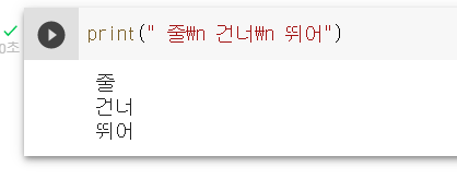 코드를 보시면 '줄' 다음에 '\n'을 사용해서 줄바꿈을 사용했고, 건너 뒤에 '\n'을 사용해서 또 줄바꿈을 사용했습니다.