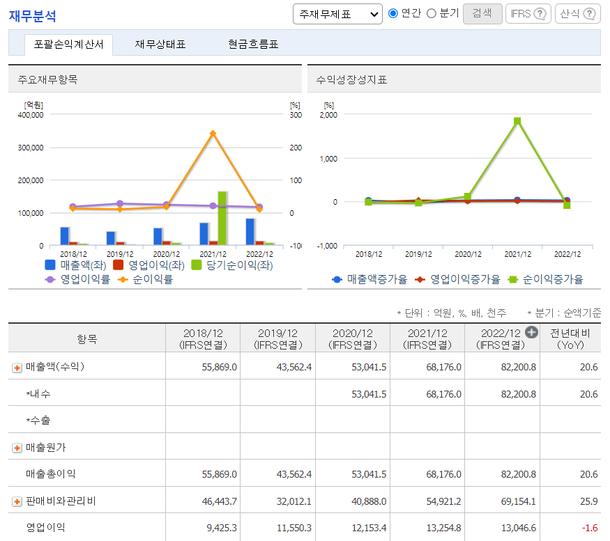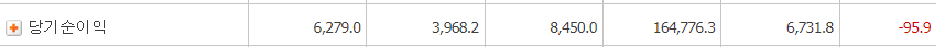 - ROE = 당기순이익 / 자기자본 총계 x 100 = 6,731억 / (235,356 + 227,441)÷2 = 2.9