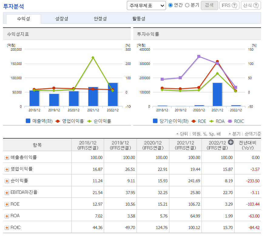 하기 수익성 지표의 ROE는 지배지분에 대해서만 계산을 한 것이기에 제가 계산한 것과 차이가 있을 수 있습니다.